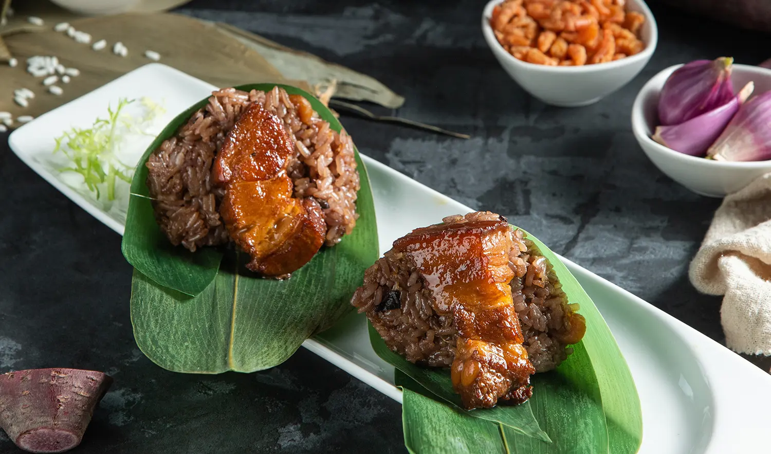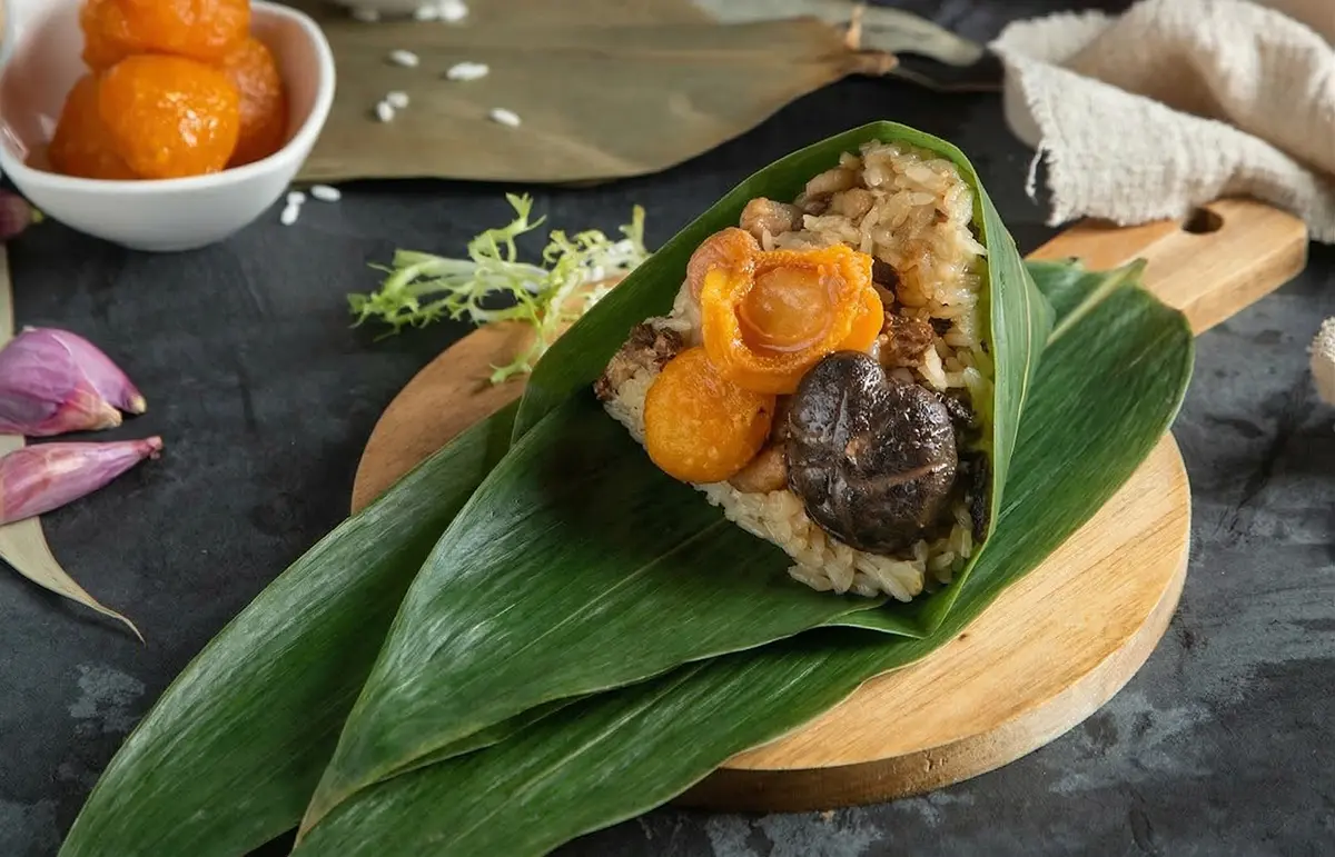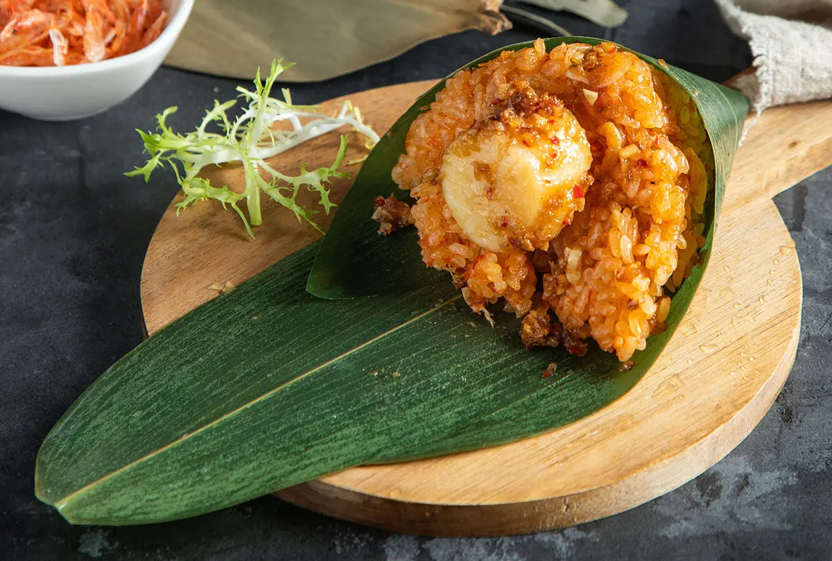 X.O干貝櫻花蝦粽』嚴選櫻花金勾蝦提取精華、搭配特選自製XO醬,搭配鮮嫩的干貝喚醒食材海洋的鮮味,採用現打紅椒汁泡過的糯米飯,口感彈牙鮮甜,創作出允指回味的多層次口感經典。