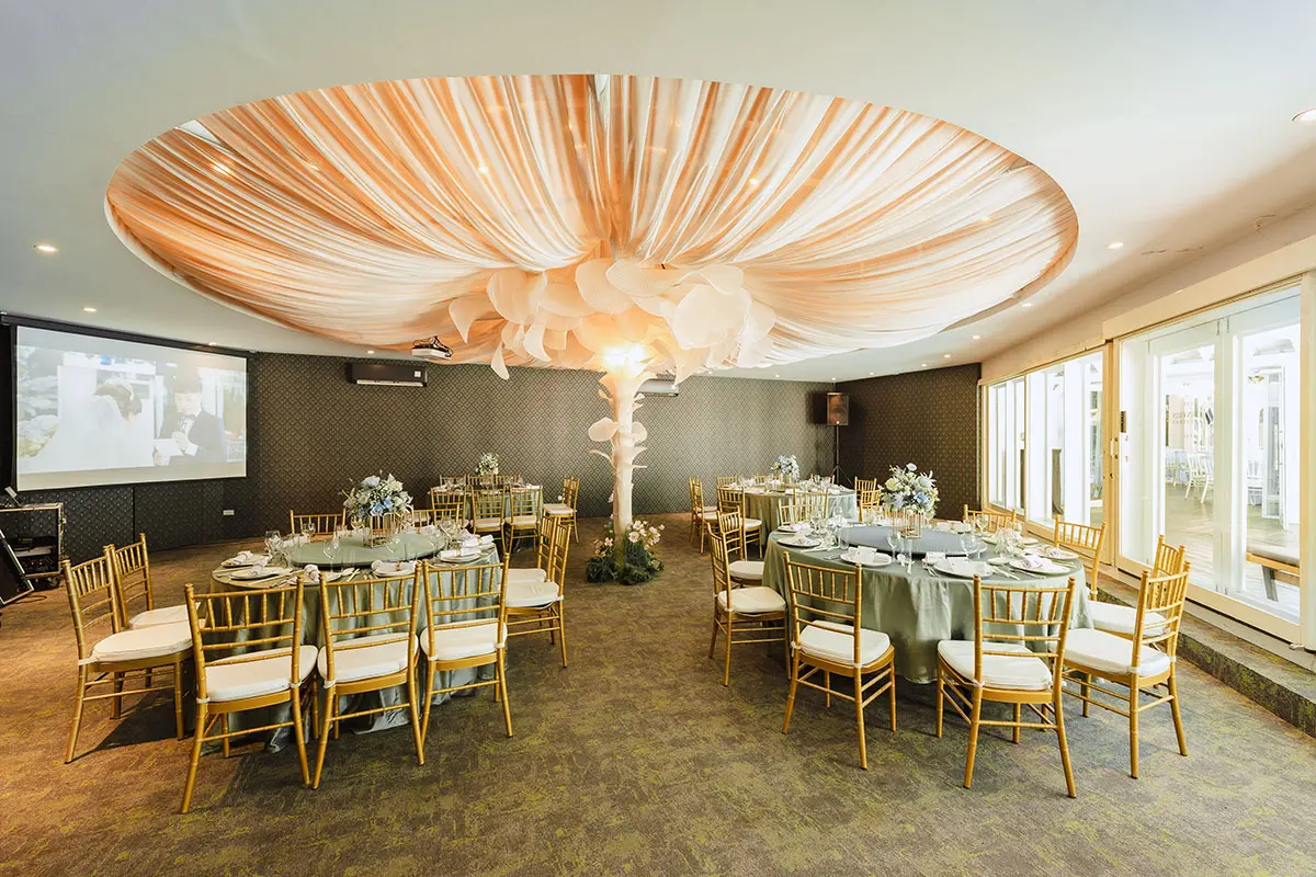 歡迎來到「香榭廳」—您專屬的多功能活動場地,坐落於風景如畫的婚禮教堂與閃閃發光的泳池旁。這裡不僅是完美的小型婚宴選擇,也是商業聚會的理想場所。