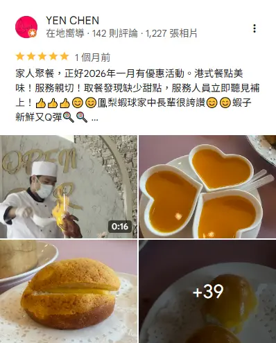 以其現點現做的港式料理和粵菜而聞名,從蒸、炸、烤通通應有盡有。現場提供各種蒸籠類點心,滿足您對港式美食的所有渴望。這家餐廳特別提供復古風味的港式推車服務和先進的貓咪機器人送餐,增添了獨特的用餐體驗。此外,它還擁有一個迷人的戶外主題莊園環境,讓顧客在自然美景中品嚐美食。其最新菜單豐富多樣,包括超過40種精心挑選的港點和粵菜,滿足各種口味需求。