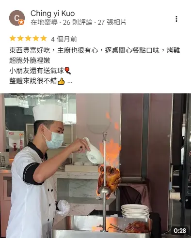 - 我約一個月就會找家人或朋友還有外國客戶來港式飲茶廳用餐,如上有人提港式飲茶廳空間媲美宴會廳,家人朋友跟客戶都很滿意,尤其是櫻桃鴨二吃,片皮鴨加米粉湯更是讚不絕口。明天又要找新客戶去用餐。