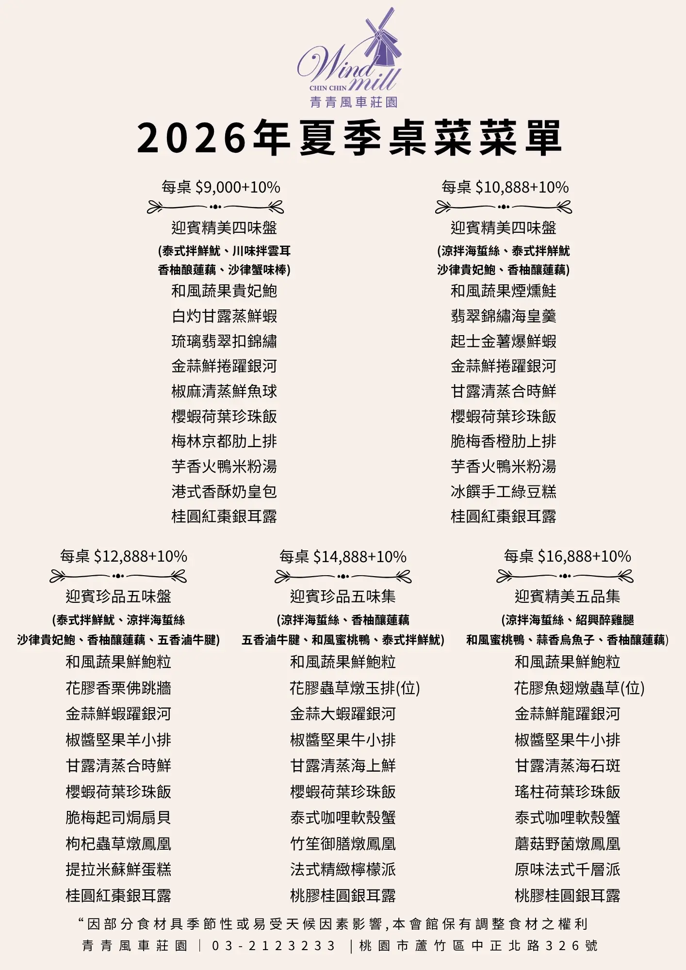 風車莊園母親節活動 溫馨桌菜:每桌12,888