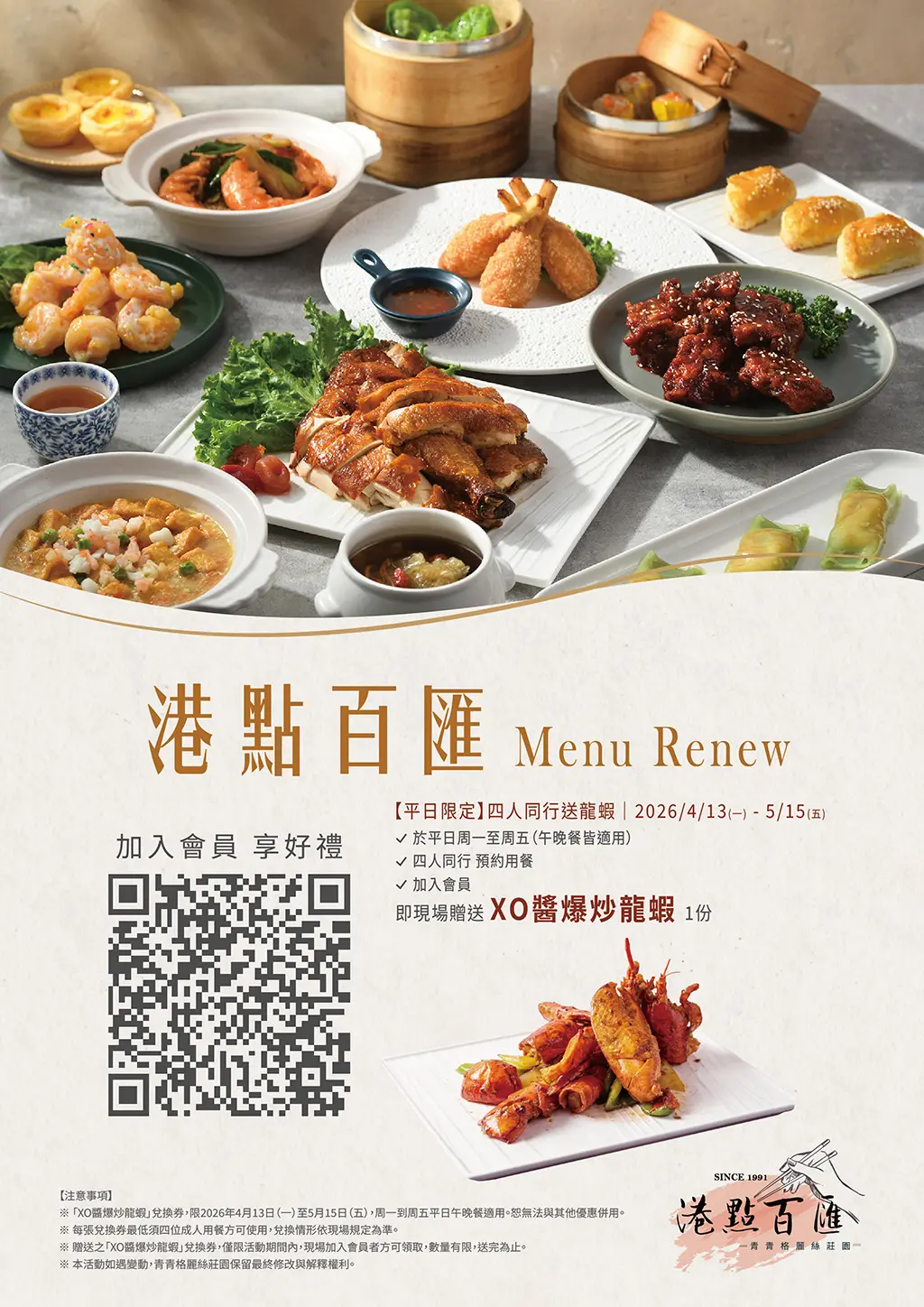 4. 贈送之XO醬爆炒龍蝦兌換券,僅限活動期間內,現場加入會員者方可領取,數量有限,送完為止。