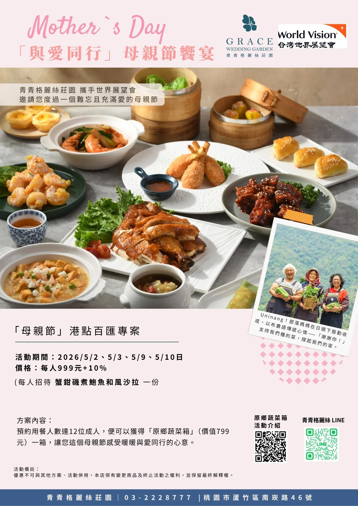 🌹 預約用餐人數達 12 位成人,便可獲得「原鄉蔬菜箱」1箱 (價值$799元)